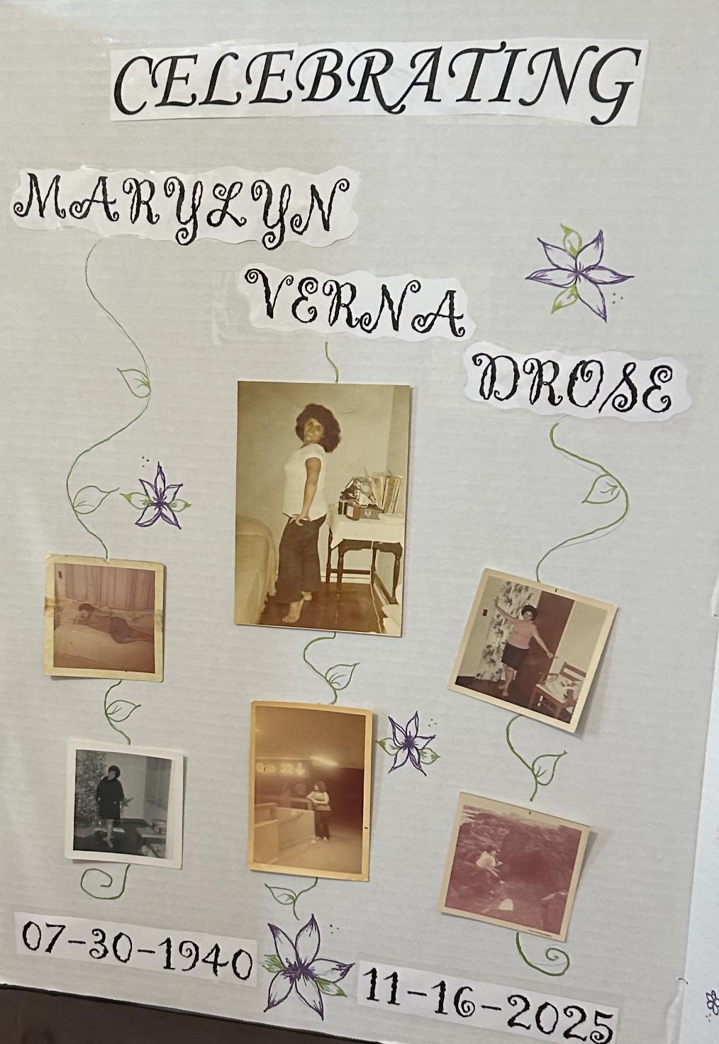 On Sunday, November 16, 2025, Marylyn Verna Drose was called to be with her Lord and Savior Jesus Christ. She was born on July 30th, 1940, at Kapiolani Hospital in Honolulu, HI. Her parents were Anthony R. and Marie Drose (Deceas Read Obituary